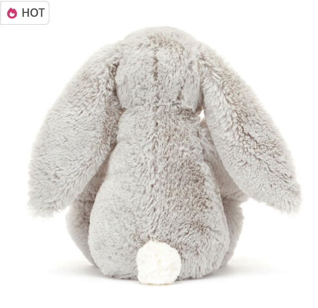 Expertly designed with Jellycat’s signature attention to detail, this bunny includes a sweet embroidered nose, soft rounded paws, and a comforting, huggable body. Lightweight and perfectly sized for little hands, it’s easy to carry, snuggle, and cherish throughout the day and night. Whether placed in a nursery, gifted as a keepsake, or added to a plush collection, Blossom Silver Bunny ‘Bloom’ brings a calming and joyful presence.
