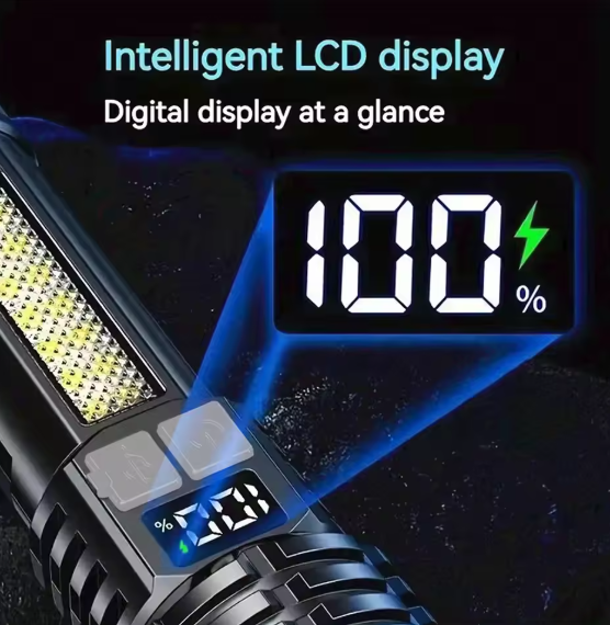 - For added versatility, the LED Rechargeable Flashlight includes a COB side light, perfect for close-range lighting, workspaces, or emergency situations. Multiple lighting modes allow you to switch between high beam, low beam, side light, and flashing modes to suit different environments and needs.