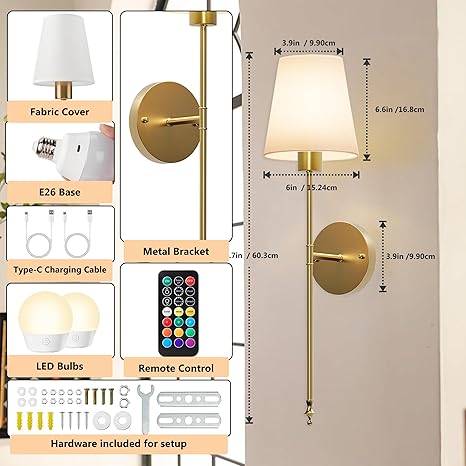 • 🛠 Effortless Installation: These cordless battery operated wall sconces are designed for quick and easy installation without the need for electricians. Their sleek and modern look effortlessly complements any room decor, providing both style and practicality in minutes.
