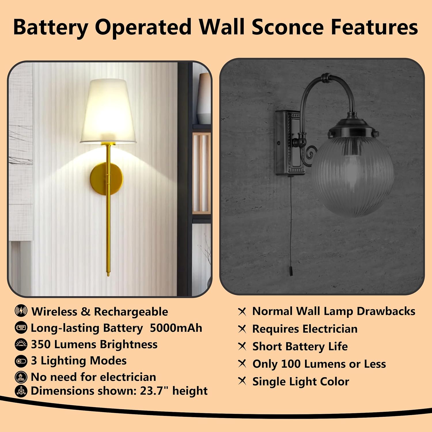 • Whether you’re upgrading your bedroom, hallway, reading nook, or outdoor patio, these battery-operated wall sconces offer flexible, wire-free lighting that’s easy to install and even easier to use.